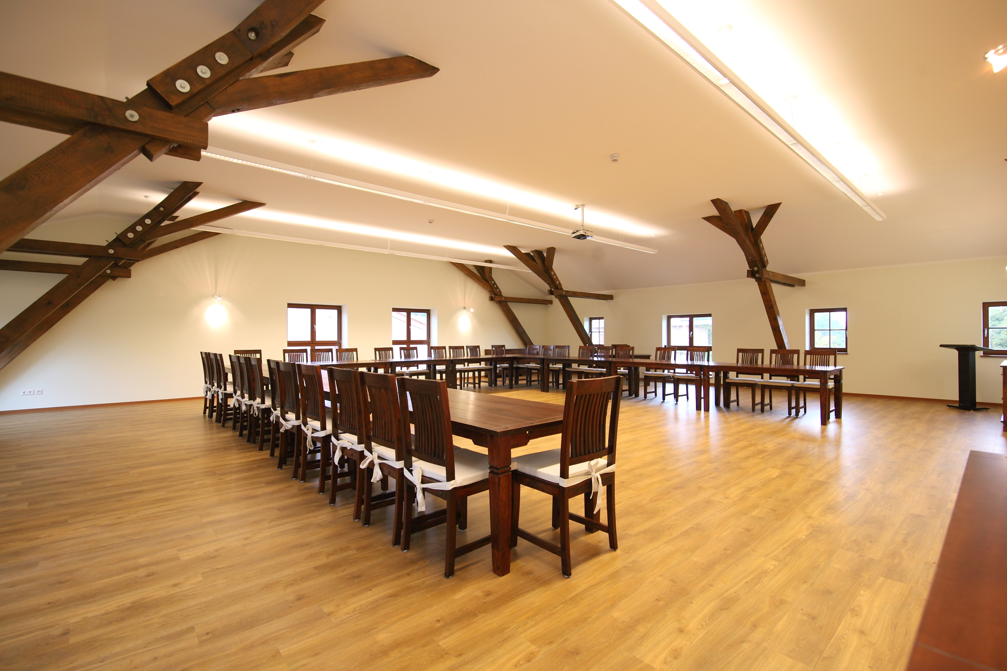 Im Erdgeschoss stehen nunmehr eine Mensa als Verpflegungsbereich für die Gäste, für die Grundschule und für den Kindergarten, sowie Büroräume und ein Schulungs-/Versammlungsraum für die Organisation und Pflege der deutsch-polnischen Beziehungen zur Verfügung.