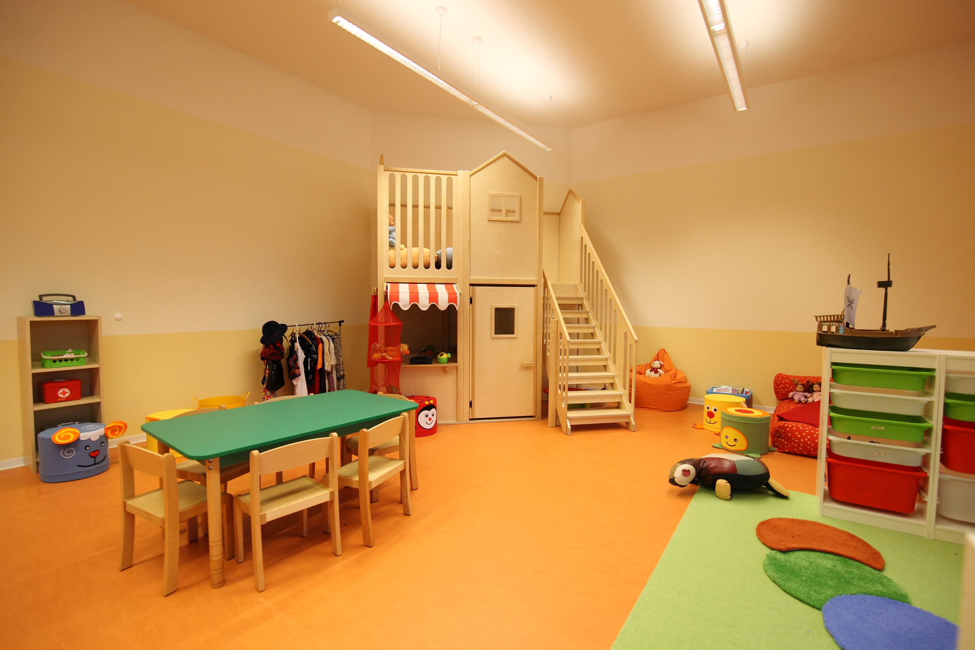 Nach dem Umbau des Gebäudes zur Kindertagesstätte sind neben drei Gruppenräumen für Krippenkinder, zwei Gruppenräume für die Kindergartenkinder und Nebenräume, wie ein Bewegungsraum etc. zur körperlichen Entfaltung der Kinder vorgesehen. In der oberen Ebene sind neben zwei Horträumen eine Kreativwerkstatt, eine Kuschel- und Leseecke, ein Experimentierraum sowie ein Theaterraum entstanden. Steigende Betreuungszahlen im Krippen-, Kindergarten- und Hortbereich bereits im ersten Quartal nach der Eröffnung sprechen für die Qualität des Projektes. Im Bedarfsfall können die jeweiligen Zahlen entsprechend der abzusichernden Betreuung angepasst werden.