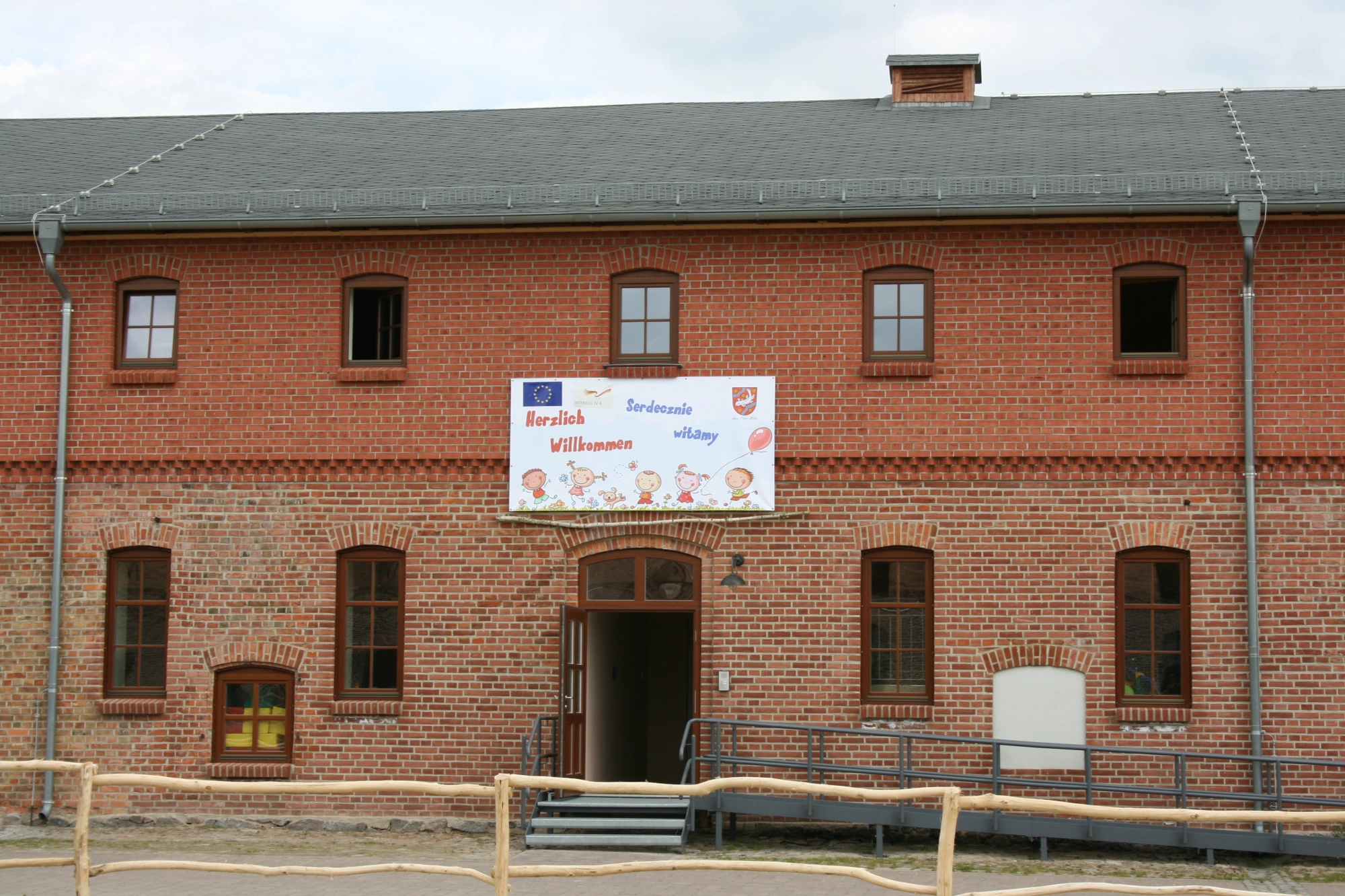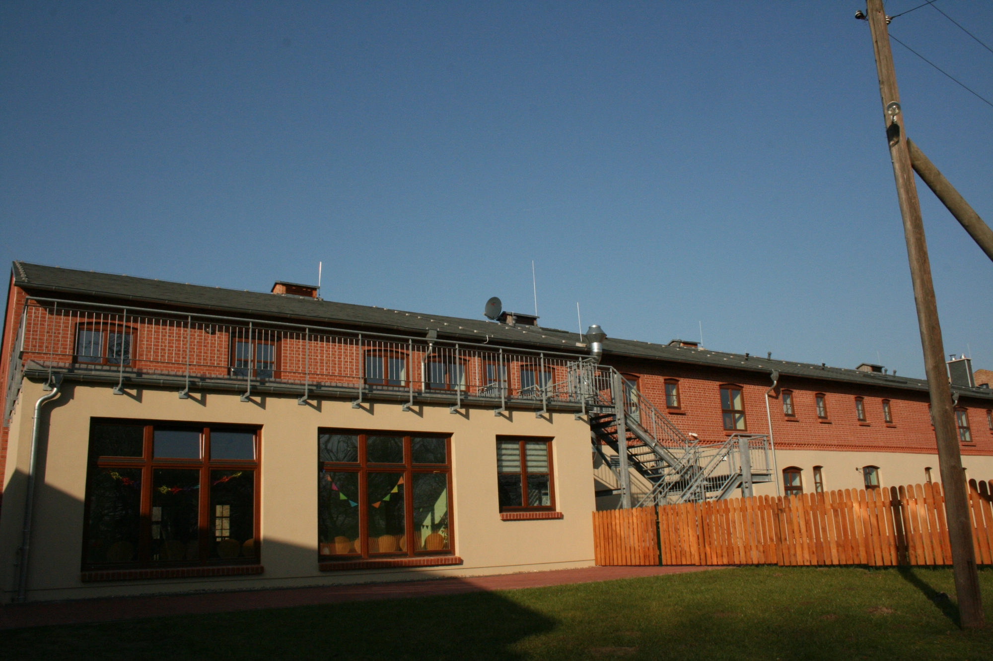 Das Gebäude zeichnet sich durch seine großzügige Bauweise, der Nähe zur Grundschule und der unmittelbaren Angrenzung an den Park aus. Auf Grund der Größe des Gebäudes konnten neben dem Ausbau zur Kindertagesstätte separate Räume für ein Deutsch-Polnisches Kommunikations- und Bildungszentrum geschaffen werden.