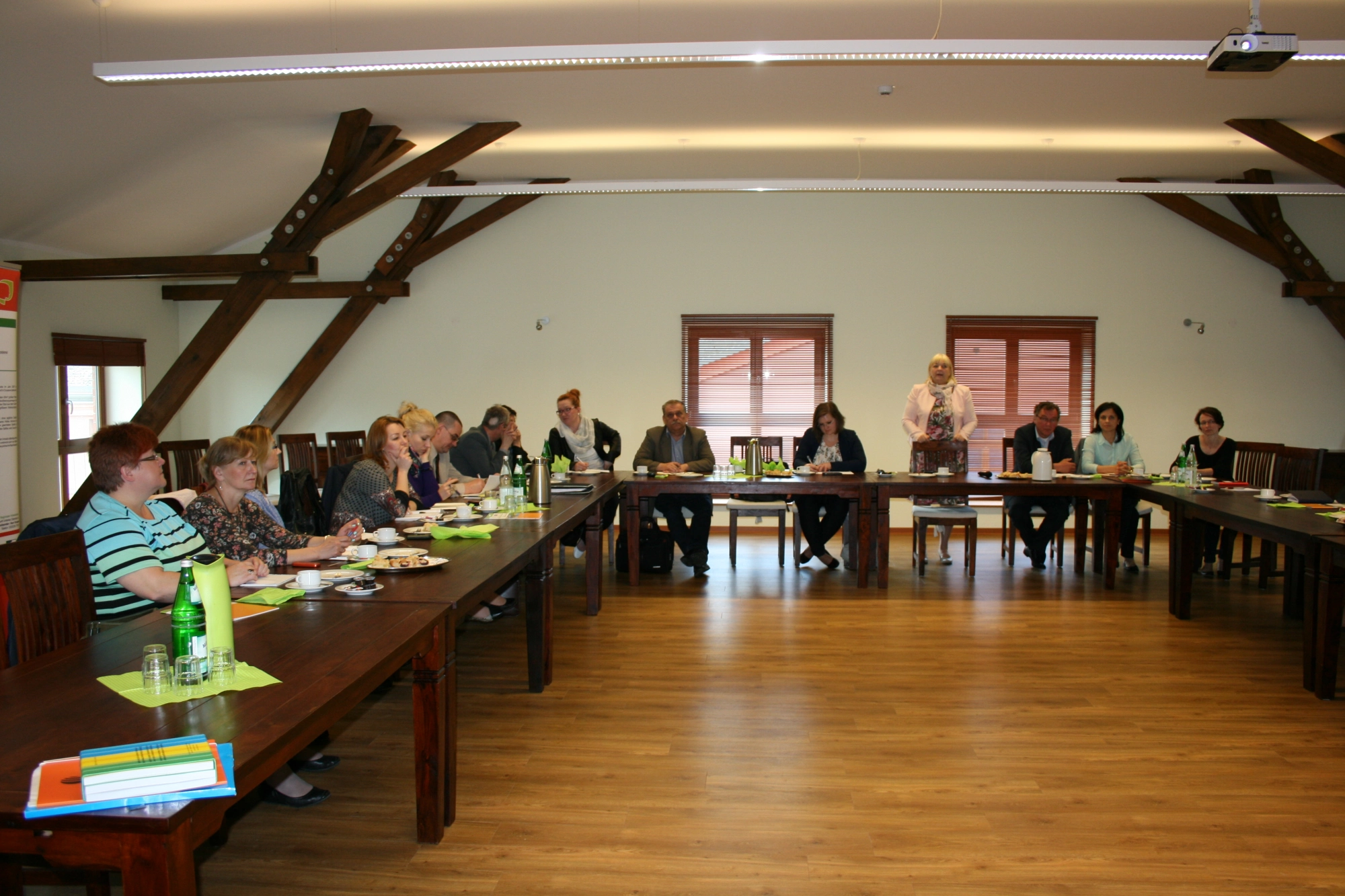 Im Erdgeschoss stehen nunmehr eine Mensa als Verpflegungsbereich für die Gäste, für die Grundschule und für den Kindergarten, sowie Büroräume und ein Schulungs-/Versammlungsraum für die Organisation und Pflege der deutsch-polnischen Beziehungen zur Verfügung.